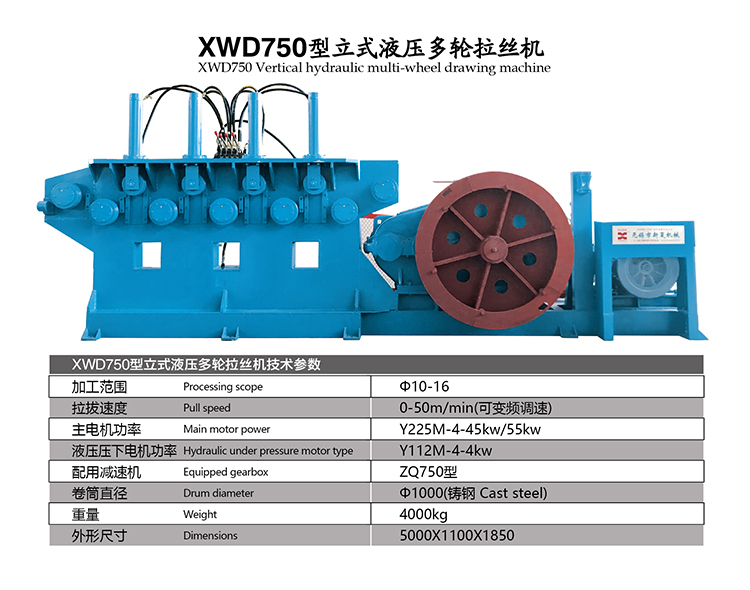 XWD750型立式液壓多輪拉絲機
