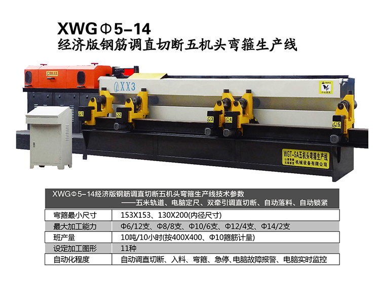 XWGφ5-14經(jīng)濟版鋼筋調(diào)直切斷五機頭彎箍生產(chǎn)線